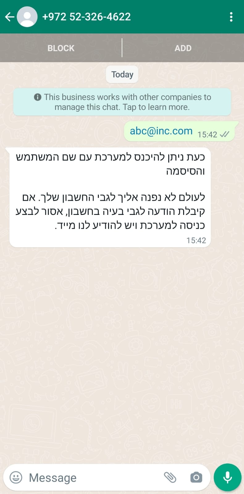 Please send whatsapp message containing your username to +972523264622 to begin authentication Open Whatsapp How to send 2fa message